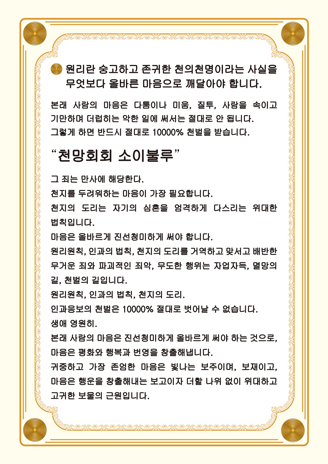 ◎ 원리란 숭고하고 존귀한 천의천명이라는 사실을 무엇보다