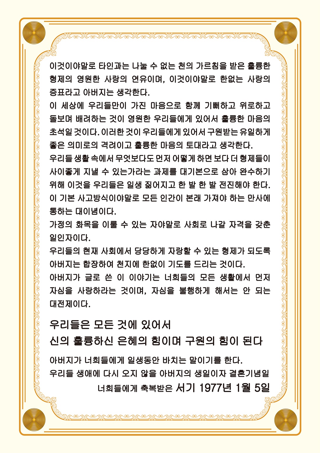 아버지가 너희들에게 일생동안 바치는 말이기를 한다。