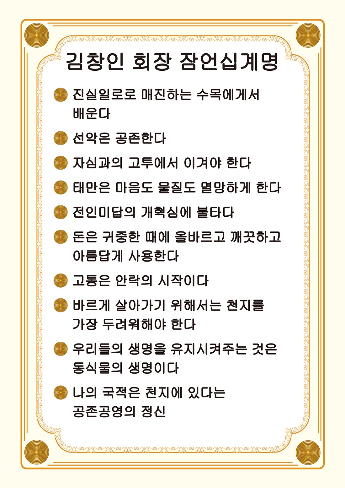 김창인 회장 잠언십계명