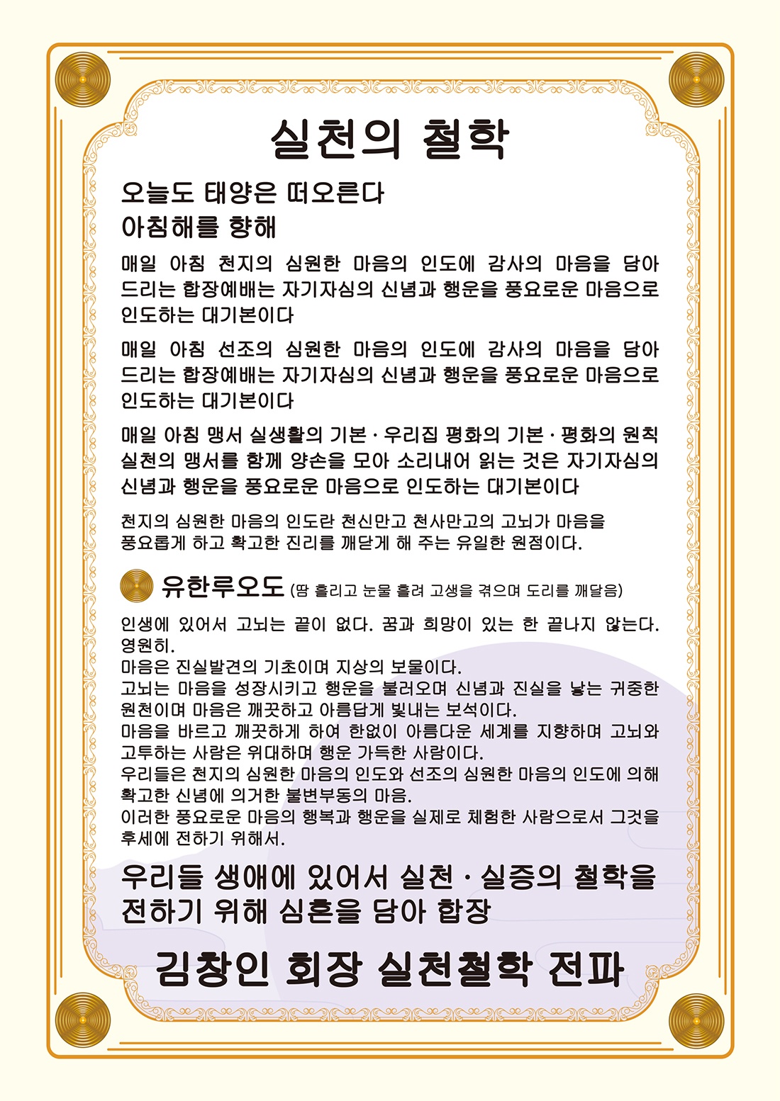 하고 확고한 진리를 깨닫게 해 주는 유일한 원점이다。 ◎ 유한루오도