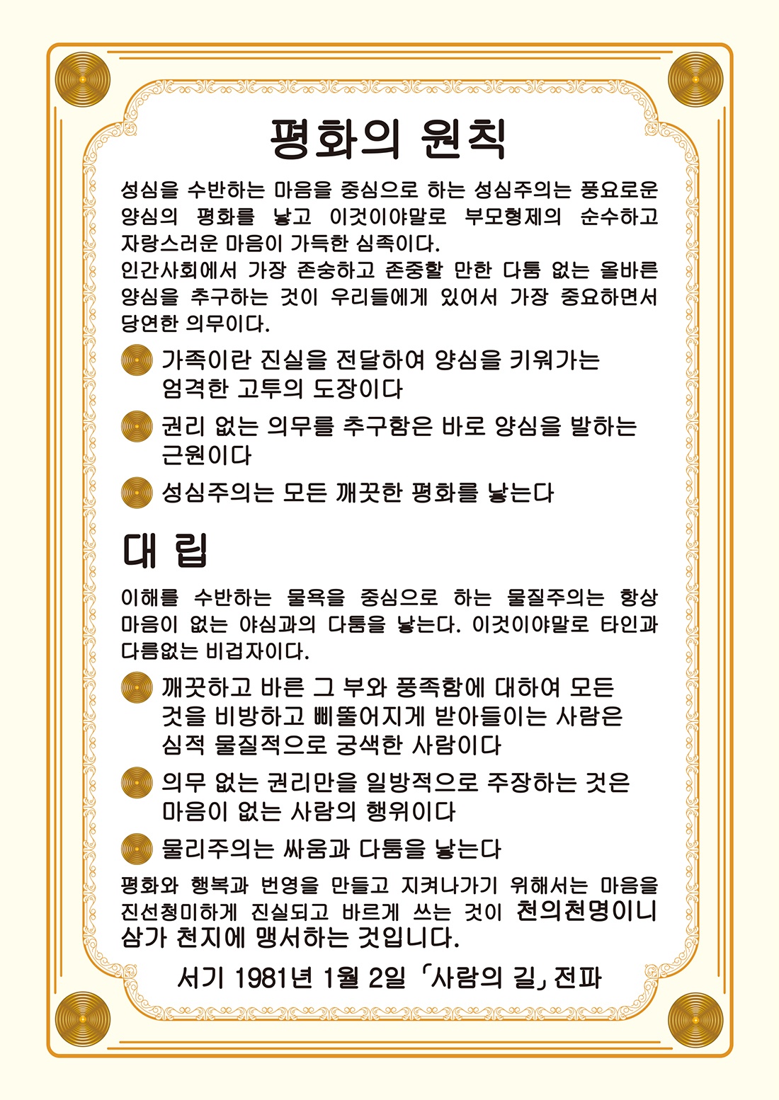 一.성심주의는 모든 깨끗한 평화를 낳는다